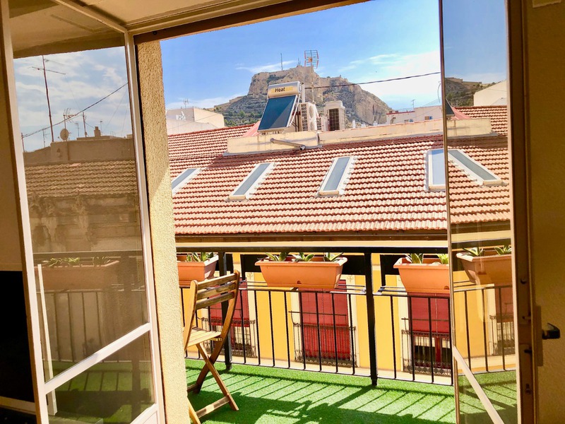 Este piso está diseñado con estilo minimalista, amueblado y equipado completamente,. dispone de 3 dormitorios, dos de ellos son dobles y el otro individual, con armarios, 2 baños con plato de ducha y mamparas, salón comedor de 25m2 muy luminoso, terraza con césped artificial para disfrutar de la hermosas vistas al castillo de Santa Bárbara, cocina independiente con sus electrodomésticos.
