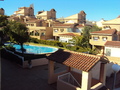 Urbanización con piscina y jardienes comunitarios.