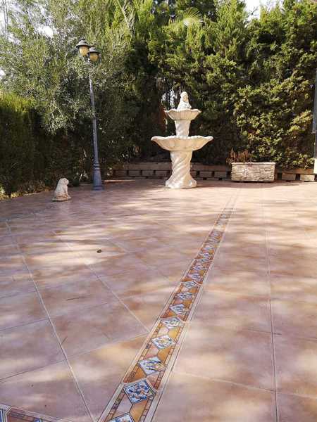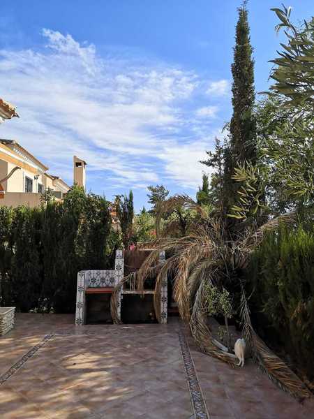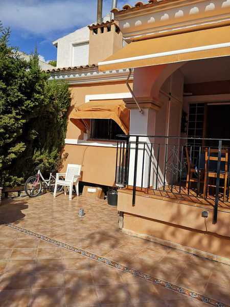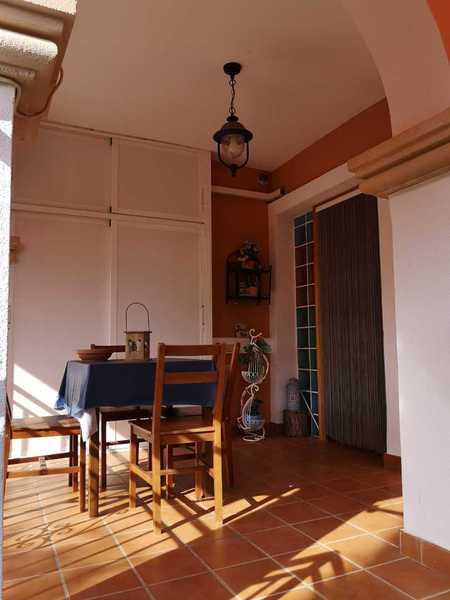 privada con piscina y acogedores jardines. En su exterior dispone de plaza de parking para dos vehículos jardín con barbacoa, porche de acceso a la casa